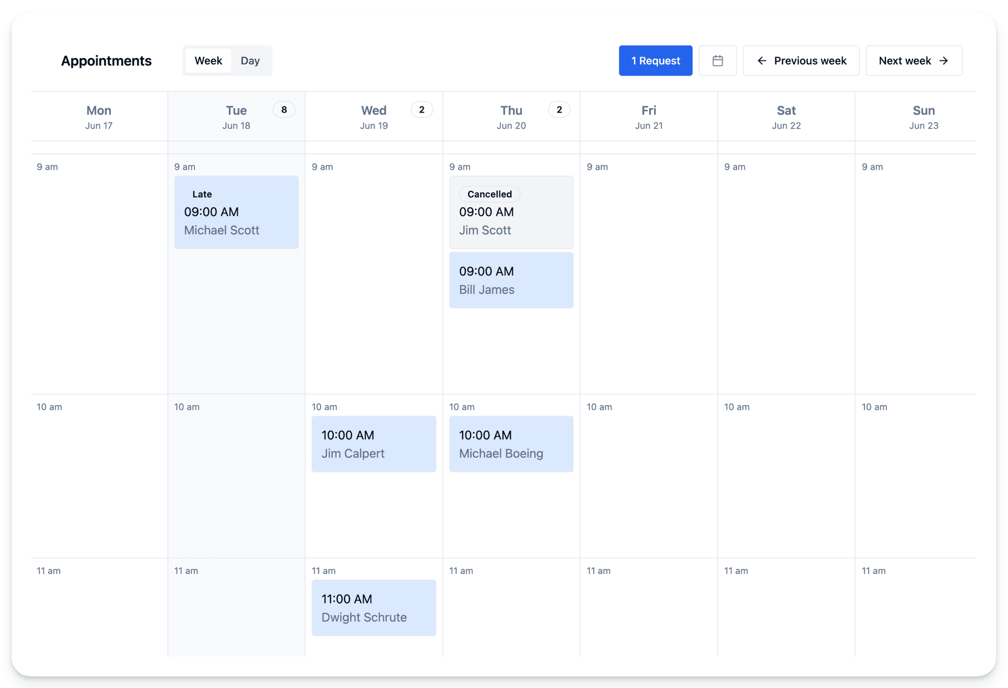 Accept appointment requests even when the shop is closed. View which vehicles are coming in when, and make sure you're not overbooked. Customers love getting a speicifc time to come in, and you'll love the organization.