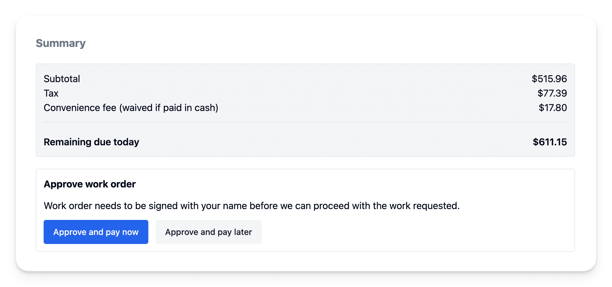 Never worry about un-approved work again. With our automated sms system, customers are able to approve and pre-pay for their work order before it starts. This builds trust between your shop and the customers, helping drive your review and improve customer satisfaction.